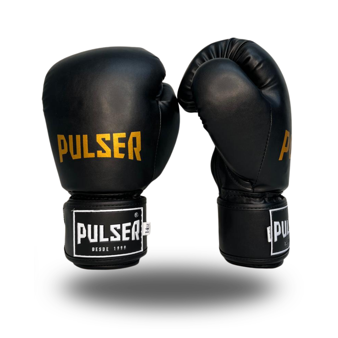 LUVA 12OZ PRETA MINIMALISTA PULSER DOURADO PU | ADOMA