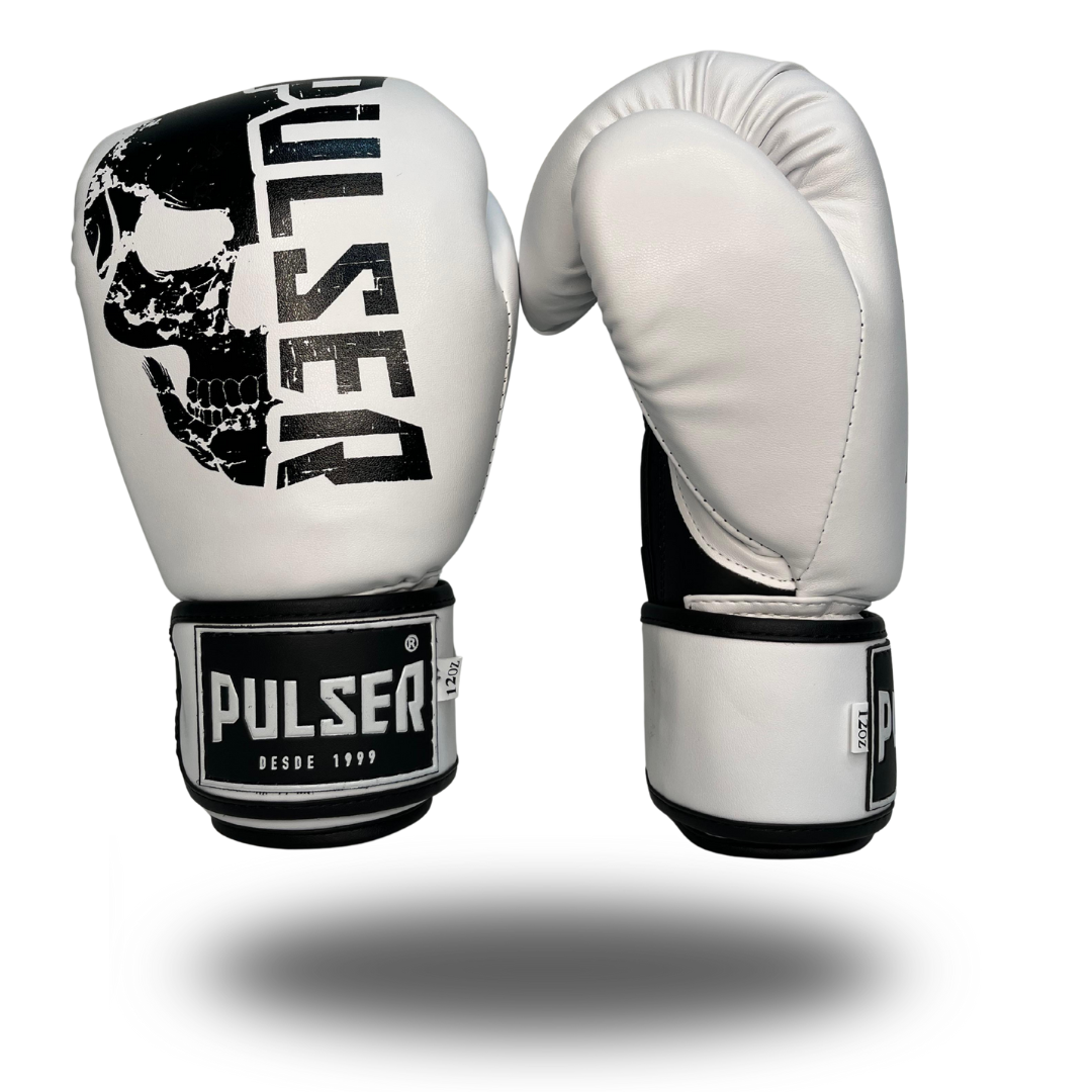 LUVA 12 OZ PU BRANCO CAVEIRA PRETO | ADOMA