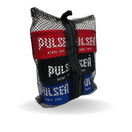 A sacola especial Pulser foi desenvolvida para lavar bandagens com segurança, evitando danos e mantendo a elasticidade.
