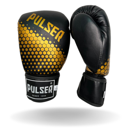 LUVA 12 OZ PU PRETA HEXA DOURADO | ADOMA